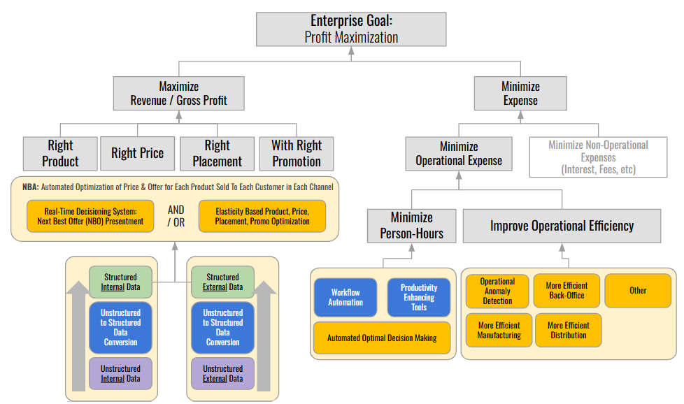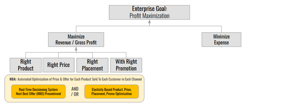 When attempting to maximize decision making in this domain, companies should focus on analyses that drive two key areas; 1) the likelihood that someone will acquire your product or service, or 2) the value of your product or service (e.g. the amount of money that you make with each sale). Let’s discuss each of these: